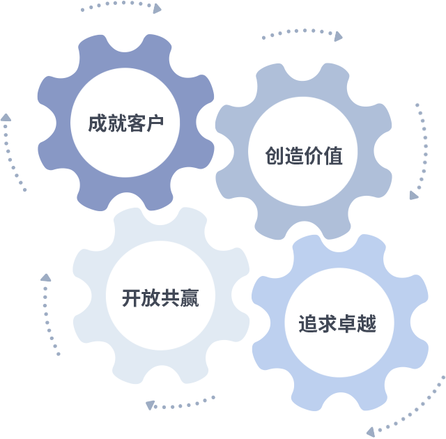 成就客户是一切决策的出发点,创造价值是衡量所有工作的标准,追求卓越是008PG国际做事做人的态度,开放共赢是008PG国际的格局也是最终的结果。价值观的齿轮环环相扣,推动着组织里的每个人不断向前。